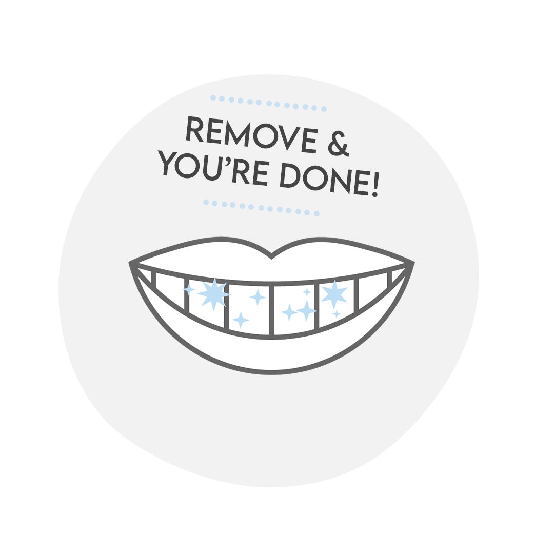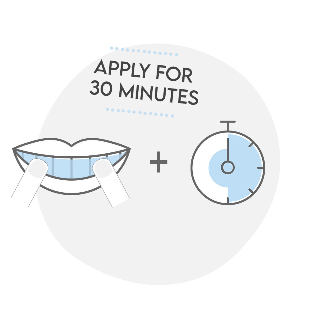 Apply upper strip to top teeth and repeat for bottom teeth. Leave for 30 minutes.